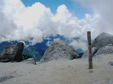 ↑仙丈ヶ岳。まだ9時頃ですが、だいぶ雲が掛かってきました。↑花崗岩ごろごろの観音ヶ岳山頂。