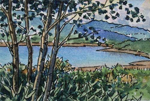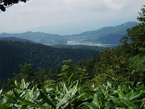 白砂山は群馬・長野・新潟の県境にあって、周囲は深い山と谷で登山口までの交通が不便、山頂で登山道が途切れている…などで入山者の少ない山のようです。 それだけに秘境といった感じで魅力的な山です。 登り口の野反湖(のぞりこ)→。 昭和31年に竣工したダム湖で、その前は野反池と呼ばれていたそうです。 集落などのない山中で、行き止まりの道路は積雪期は閉鎖という訳で、ホテルや飲食店の並ぶ観光地の湖とは違います。 夏休みの終わった9月初めでもあり、人は数えるほどしかいませんでした。 水面は1500mほど、湖畔は笹原や白樺などの林で、周囲に目を引く山も無いので静かすぎて寂しい感じもします。 |