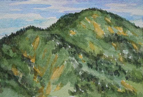 ←堂岩山下からの白砂山(中央の一番高い所)。