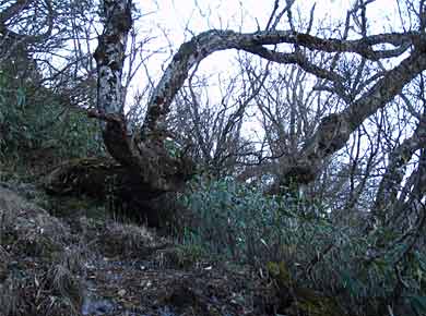 ![]() ↑自然林で頻繁に見掛けた熊の爪痕。縄張り宣言のために引っ掻くのだそうですが、樹木も大変な迷惑でしょうね。ようやく山頂の標識が見えてきました↑。 |