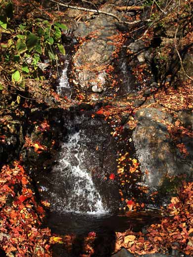 ↑十枚峠。左から来て右手の下十枚山へ往復します。手前は中腹を巻いて中の段に下りる道、先は富士川側、山梨県南部町に下りる道です。