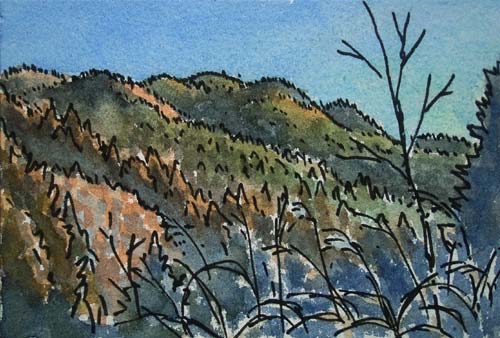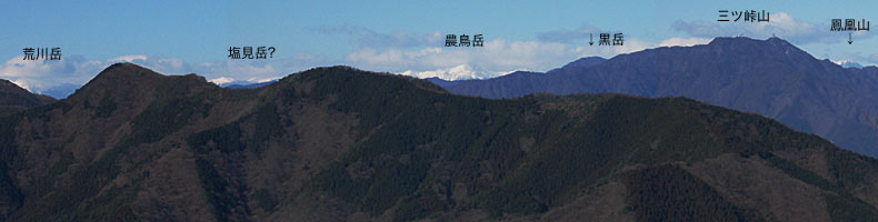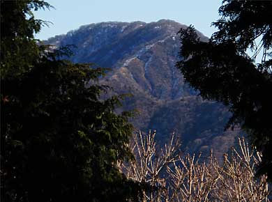 ←途中の林道から見上げる山頂。結構急坂のようです。 |