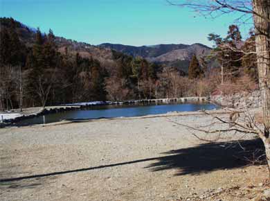 ![]() ↑道志川をへだてて反対側の今倉山。東側に針葉樹の間から大室山(おおむろやま)も見えます↑。 |