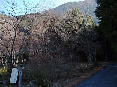青笹山は、安倍川の東に連なる尾根の高みのひとつで、昨年秋に歩いた十枚山の南に当たります。販売されている登山案内地図の範囲を外れていて、遠くからの登山者は少ないようです(国土地理院の 1/25000 地図「篠井山」になりますが、山道は古い調査によるものらしく、現状とは違うところもあります)。 静岡市から安倍街道を北上、梅ヶ島手前から「有東木(うとうぎ)」の標識のある細い道を東にはいります。 看板に「わさび発祥の地」とありました。 帰りに下りてくる道(写真右)との合流点「葵高原」→。 ……といっても観光地の高原のように広々とした所ではありません。 |