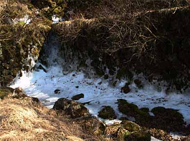 ![]() ↑お地蔵様は峠の山梨県側にあります。屋根付きで、左右にソーラーライトの灯明、後には温度計、上には しめ縄まで下がっています。上右は東側に見える富士山。 |