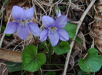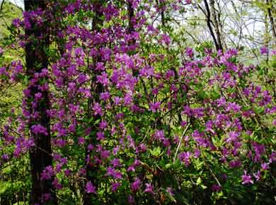 ![]() ↑ありふれたスミレ(タチツボスミレ)ですが、ここでは今が開花期のようです。↑ツツジもよく見掛けました(トウゴクミツバツツジ)。 |