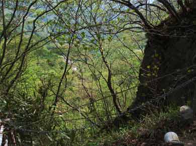 ![]() ↑暑い日で、「きれっと」という部分から新緑の谷を吹き上げる風が、何よりのご馳走でした。 尾根は小さな上り下りが多いのですが、時々、公園の散歩道のような歩きやすい道になります↑。 |