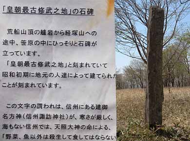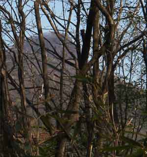 ![]() ↑鋏(はさみ)岩というあたり。下にビバークできそうな、くぼみのある岩がいくつか並んでいます。昔、修験道場といった場所だったらしく、お堂の礎石らしい石も残っていました。 上右は艫岩の台地から落ちる「一杯水」。登り道に渓流を渡るような箇所が無いので、昔からの水場だったようです。 |