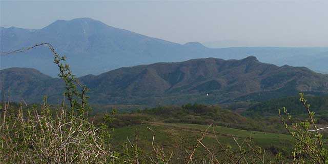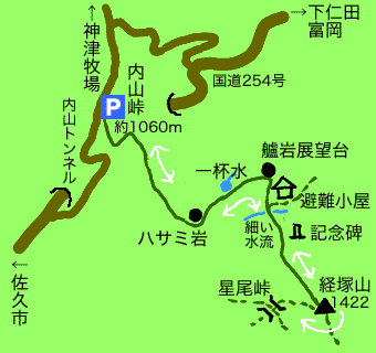↓南西に八ヶ岳が見えますが、だいぶ霞んでいます。戻り道の艫岩を下りたあたりからの経塚山↓。