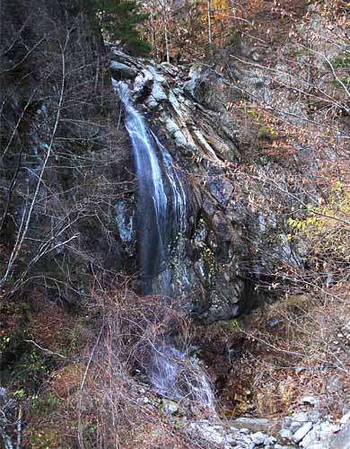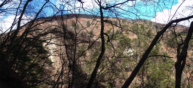 ![]() ↑百合ヶ渕と、右手のグドバ岩。上は見上げた岩。猿のホームグラウンドだと書かれてありました。そういえば、鋭い口笛のような猿の声が聞こえています。駒ヶ岳は山伏の信仰の山だったようで、百合ヶ渕には何やらローマンチックな伝説が書かれていました。 上右は神蛇滝(じんじゃだき)。きれいな三段の滝で、ここにも山伏関係の伝説があるようです。 |