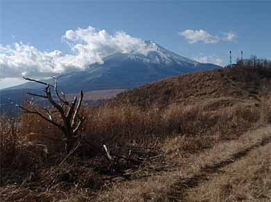 上右は丘の上まで伸びている別荘地。この先では尾根上のハイキング道のすぐ脇まで別荘がありました。別荘は山中湖村の主要な収入源のようです。