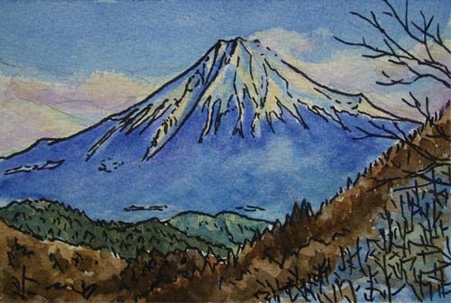 ←真富士神社前から見た富士山。手前の尾根の切れ込みが、河口湖上の天下茶屋あたりからの眺めに似ているようです。 |