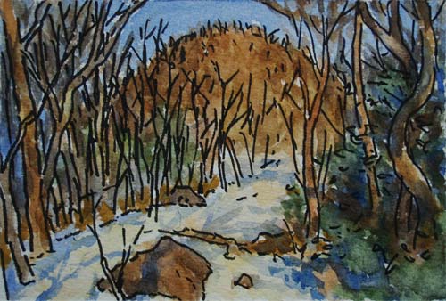 この先、青笹山への道(左方向)は雪のあと通った人がいないらしく、雪に埋まっていました。