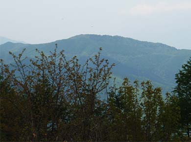 途中の尾根に少し盛り上がった所があり、「古書に中嶽とあり」と書いた板が木に打ち付けてありました。
