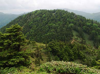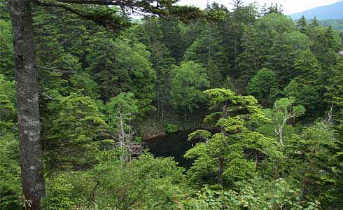![]() ↑この辺に多いネマガリダケのタケノコ。前日のニュースで、タケノコ取りに山にはいった人がケガで動けなくなり、チョコレートなどで飢えをしのいで20日後に発見されたとか聞きましたが、山の中ならこういった笹のタケノコのことでしょうか。折ると芯は柔らかそうなので、食べてみるとパンダになった気分で、生でもなかなかいけます。もしかしたらその方はタケノコも食べていたのかもしれません。 この周辺は5万年ほど前の志賀山の噴火による溶岩台地だそうで、雪解け水が溜まったような池がたくさんあります。上右は志賀山の山腹にあるお釜池。噴火口のひとつかもしれません。 |