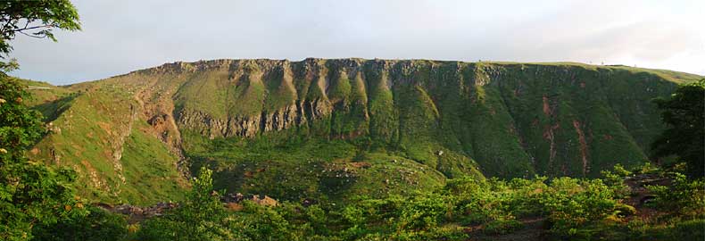 池からは急な山腹を直線で登るので、角材で組んだ段差の大きい階段登りが一時間近く続きます。