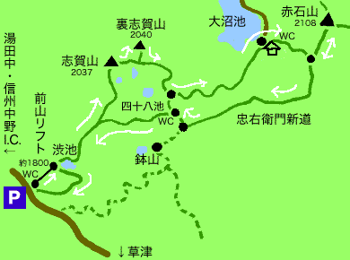 裏志賀山から一時間あまり歩くと大沼池畔に出ました。