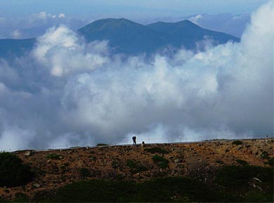 志賀高原から草津への道は夕方から深い霧になり、路側の白線も10mほど先しか見えないほどでしたが、翌朝は霧も晴れ、梅雨時には珍しい晴天となったので、本白根山(もとしらねさん)を山歩することにしました。