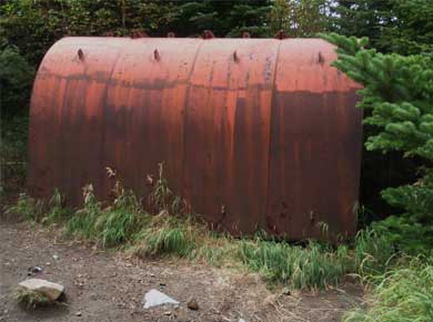 ![]() ↑尾根上が近づいて浅間山が頭を出しました。 噴火用シェルターかと思ったのですが避雷用でした↑。 この辺は雷の産地のようです。内側に絶縁用のゴムが張ってあると書いてありましたが、ゴムは劣化してはげ落ちていました。 |