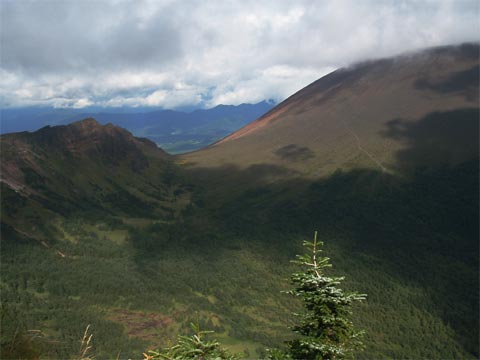 黒斑山の南になりますが、間に谷があって(右側の切れ込み)隔たっています。