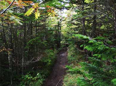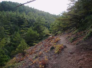 蛇骨岳までは片側が崖になった尾根上の道ですが、起伏は少なく、何となく山頂に着いてしまいます→。