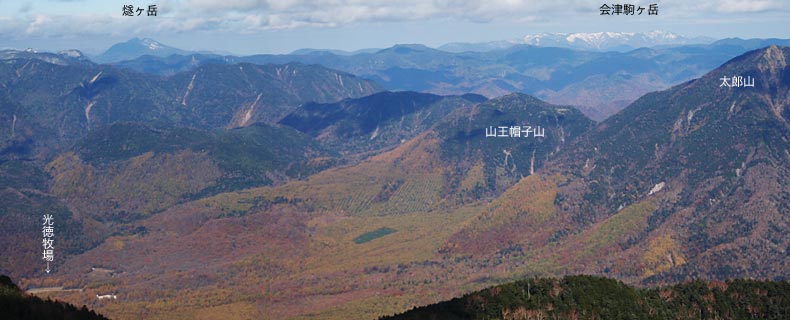 ←北側に隣の大真名子・女峰山が見えてきました。八合目あたりで山頂方向に法螺貝の音を何度か聞きましたがこの辺で出会った反対方向からの登山者に依ると、今日が男体山閉山の日で、山頂で閉山式があったそうです。 先ほどの山伏さんはそのための登山だったようで、そういえば朝早く志津小屋の脇を通った時、出発の準備をしていて、「今日は打ち上げには出ないで……」などという会話が聞こえました。たぶん打ち上げの飲み会があるのでしょうね。 |