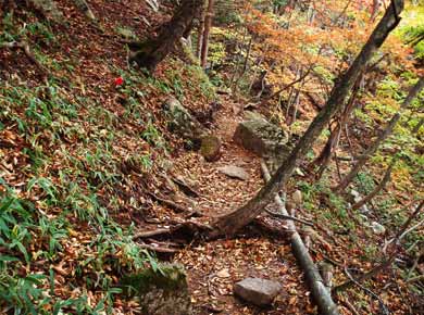 二合目、朝方と同じ場所からの太郎山→。 雲も消えて堂々とした姿になりました。 ↓は志津小屋わきにあるお堂の「御婆様」(おんばさま)の石像。 これは神様ではなく仏教の関係のようです。 「御婆 明治四十一年十月奉納」と書いた額が壁にありました。 自然石を活かして作られた感じで、眼など漫画チックな感じです。 歩行時間は5時間ほど |