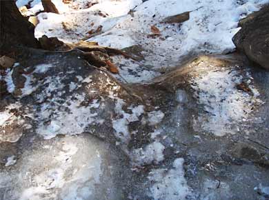↑踏み固められて氷になっている部分もあり、軽アイゼンが役立ちました。