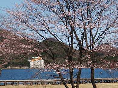 5月初めの榛名湖畔は山桜の花盛りでした→。