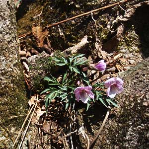 ↑木の股に根を下ろしたスミレ。葉の形で見るとエイザンスミレという種類のようです。