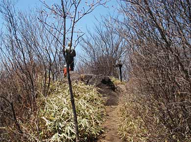 掃部ヶ岳への標高差は少ないのですが、山頂近くまでしっかりと階段が組まれていて↑、山登りトレーニングのようでくたびれます。