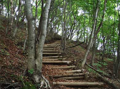 左の階段が登り口→。