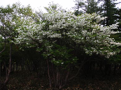 このあたりにツツジがまとまっている「つつじ平」という場所がありますが、この山は全体にツツジが多いようです↓。左はシロヤシオ、右はアカヤシオ。