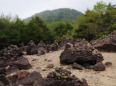 右の石積みからは水が流れています。