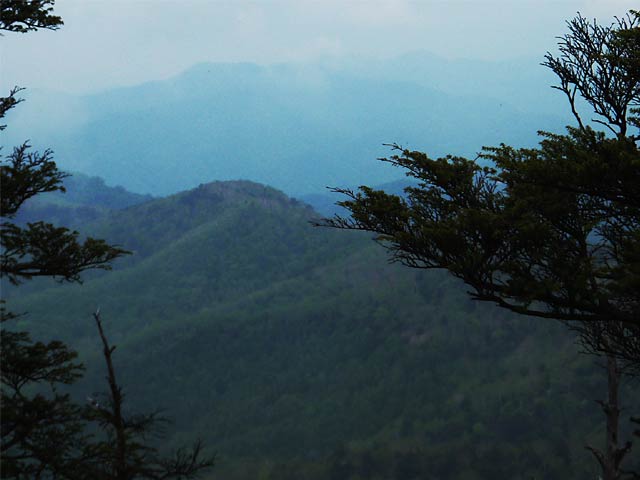 ↑皇海山の右手の山並み。右端は方向から見ると男体山のようです。 |