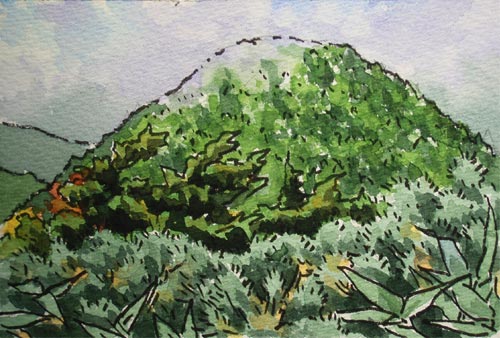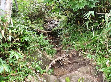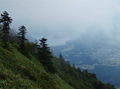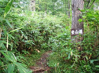 ↑火口への急斜面の登り道にある「しなの木」。シナノキは木の種類ですが、場所の名前でもあるのかも知れません。