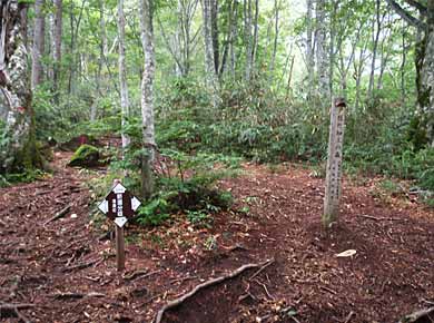 ↓いつのまにか林道が終わって、四つ角のようになっている「新道分岐」に出ました。