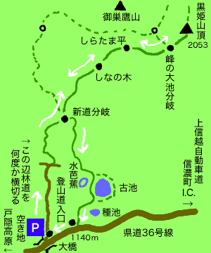 野尻湖は山頂からだと木立で欠けて見えますが、笹の斜面を少し下りると全体を見ることができます→。
