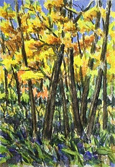 登山口への林道の入口、光徳牧場あたりのミズナラ林→。