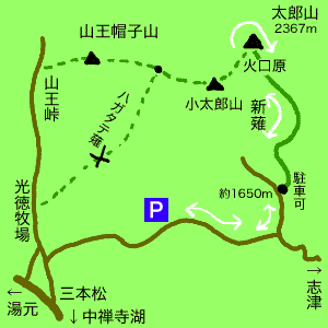 以前は途中からハガタテ薙を通って光徳に出られたようですが、現在は崖が崩れて通行止めで、もうひとつ山王帽子山を越えて山王峠から光徳へ下りるそうです。