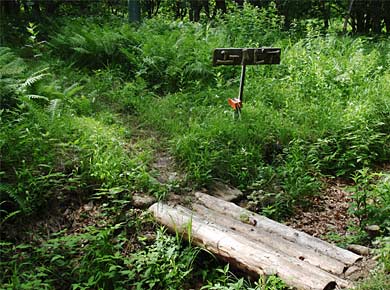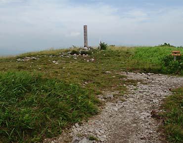 緩やかな斜面を登り、第五園地という空き地を過ぎた八島ヶ原湿原(左)と車山(右)の分岐↓。
