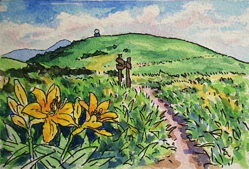 ![]() ↑男女倉山から北の耳への手前の大笹峰。霧ヶ峰外回りの道から少し外れて立ち寄る人は少ないようですが、何か小さな赤い三角屋根に惹かれて行ってみたところ、建物はスキー場の休憩所でした。 山頂までリフトも上がっていて冬は賑わいそうですが、今は人影も無く、広い山頂は夏草が風に揺れるばかりです。この先は霧ヶ峰の北側斜面で、雪の状態がいいのかスキーコースが幾つかあります。 大笹峰から見る、これも山歩コースから外れた隣の殿城山↑。スキー場の駐車場から大笹峰、北、南の耳、殿城山と廻って下りるのも静かな山歩になりそうです。 |