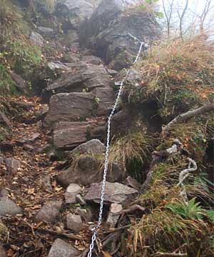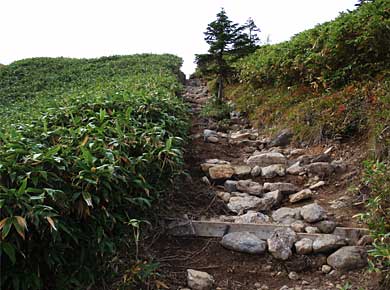 上にそびえるのは苗場山山頂の台地の一端ですが、見える上端が台地というのではなさそうです。