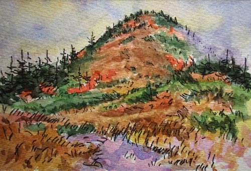 八合目を過ぎると崩れ止めの横木の階段状になり、間もなく上が切れて山頂台地が見えてきました↓。