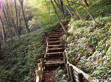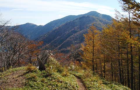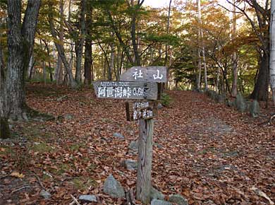 立木観音の駐車場からの道を歩くうちに、社山(しゃざん)が見えてきました→。