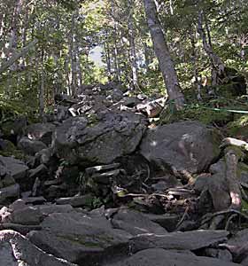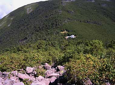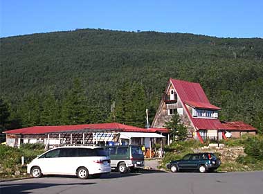 八月も晴天が続かず九月になって四日に長野県の蓼科山(たてしなやま)に遠足しました。 ←登り口の大河原峠。建物は大河原ヒュッテ。この付近道幅が広く、両脇に駐車できます。 白樺湖から峠への道は林や展望など、気持ちのいい道路です。さらに佐久方面に下る「蓼科スカイライン」もよさそうですが、ちょうど9月初めから工事中とかで峠の下で通行止めでした。 ←峠からの登り道。このまわりの山はたいてい火山なので、噴出したらしい大きな石がごろごろして歩きにくい。 |