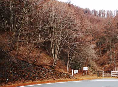 浅間牧場の北から高崎市の倉渕を結ぶ山間道路にはいって、二度上峠(にどあげとうげ/何か由緒がありそうですね)を過ぎたあたりの登り口→。