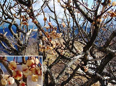 ←少し登ったあたりから、林の枝越しに山頂らしい所が見えました。