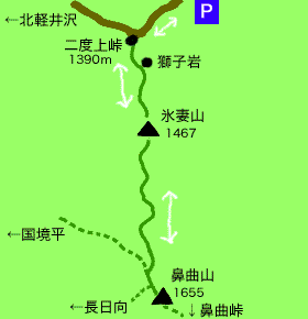 鼻の頭の手前、ひとつ目の山頂「小天狗」→。