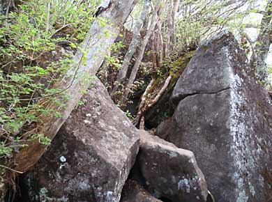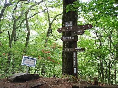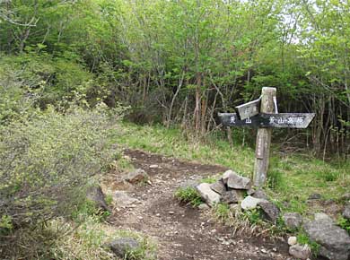 前橋市から赤城道路を上がった「ローラー滑り台」という観光施設のあたりに登り口がありますが、登り口あたりは遊歩道が入り組んでいて道標も込み入ってわかりにくくなっています→。